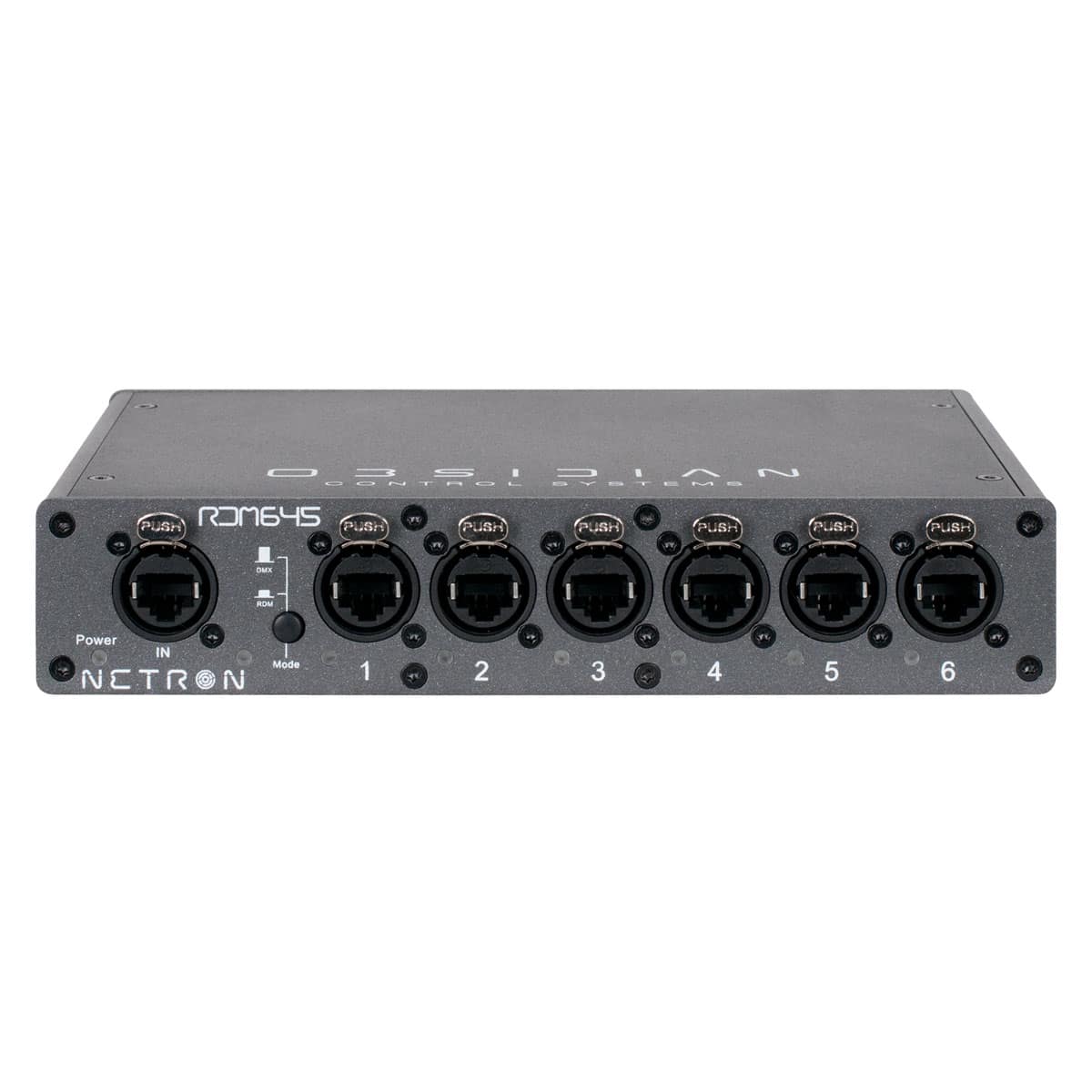 The Netron RDM 645 is a rugged and compact DMX/RDM Splitter. Designed for live production and installations, it features six opto-isolated RJ45 DMX outputs and flexible mounting options to cover any situation.